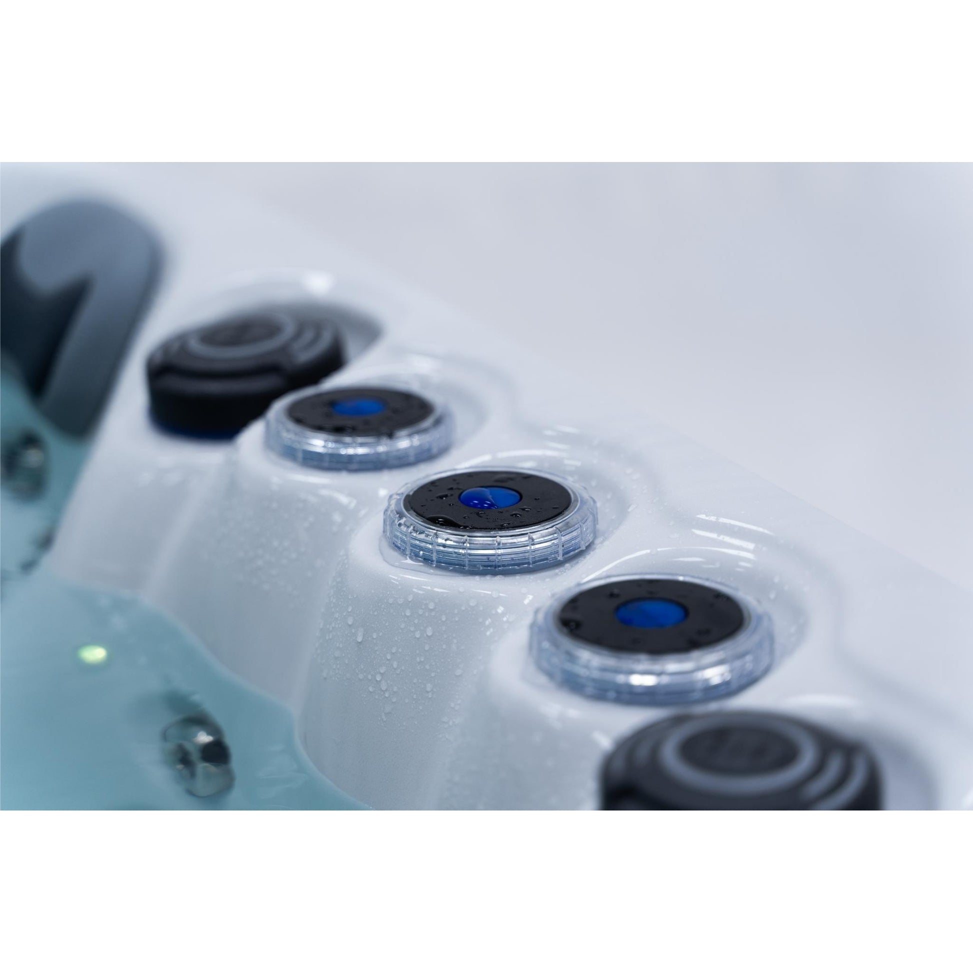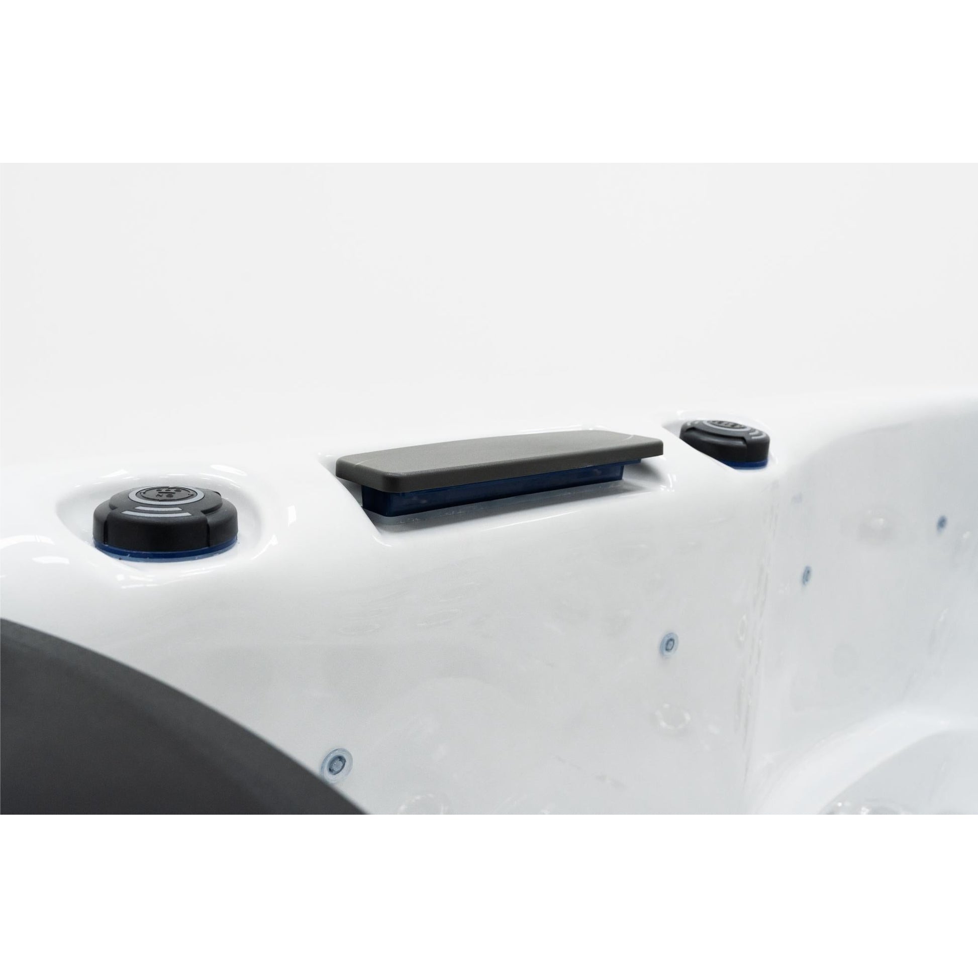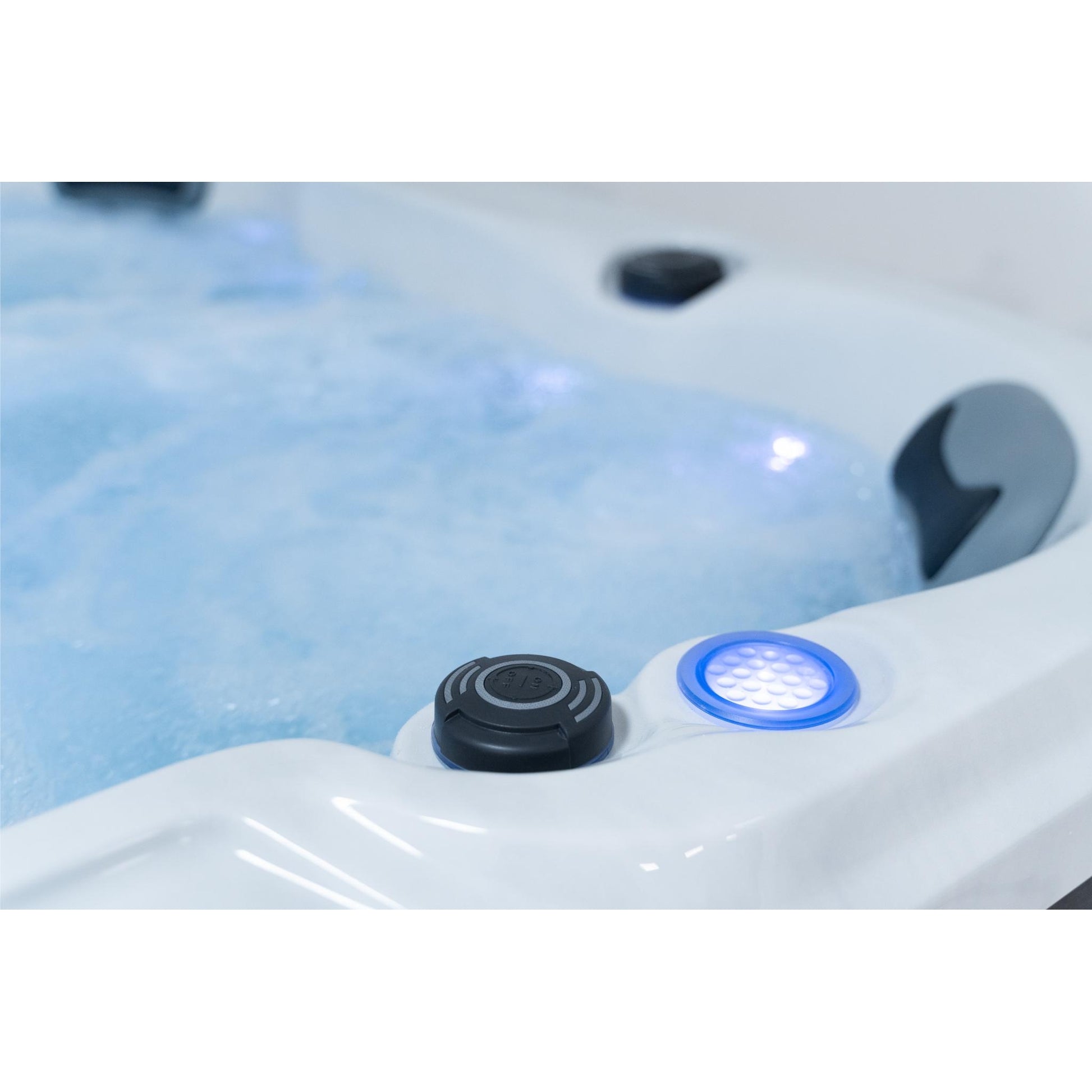 Crafted for contemporary outdoor living, the Lumina features a stunning Sterling Silver acrylic shell, stylish grey side panels, and ambient LED perimeter and corner lighting that creates the perfect atmosphere day or night. Enjoy rich, immersive sound through the integrated Bluetooth audio system, and easily customise every aspect of your spa experience with the dependable Gecko IN.K300 control panel.