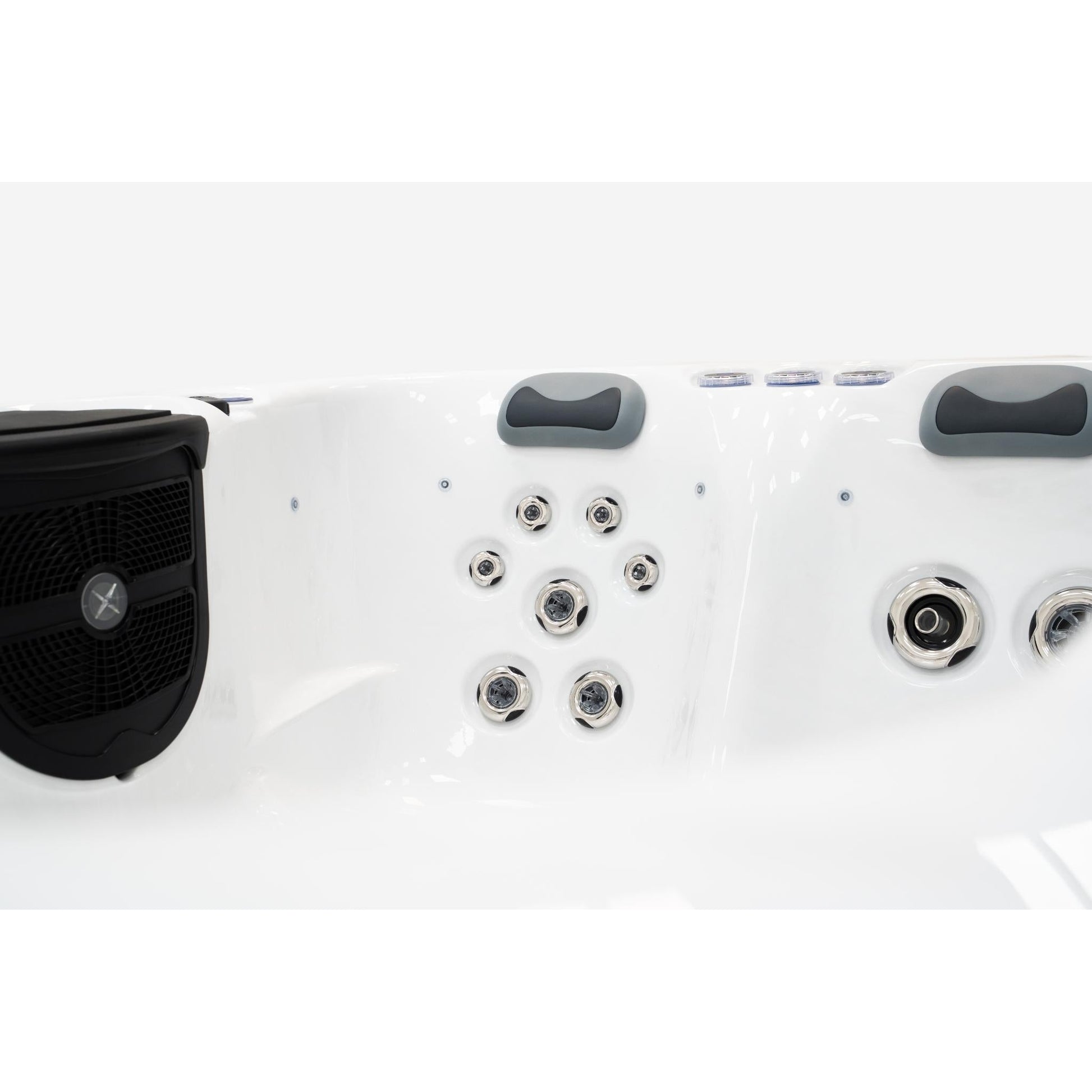 With 26 powerful jets, an advanced ozone water care system, and wrap-around perimeter insulation, the ESSENCE delivers efficient performance, year-round comfort, and easy maintenance. Set the mood with perimeter and corner LED lighting, enjoy your favourite tunes via Bluetooth connectivity and dual speakers, and manage everything effortlessly with the intuitive Gecko IN.K300 control panel.