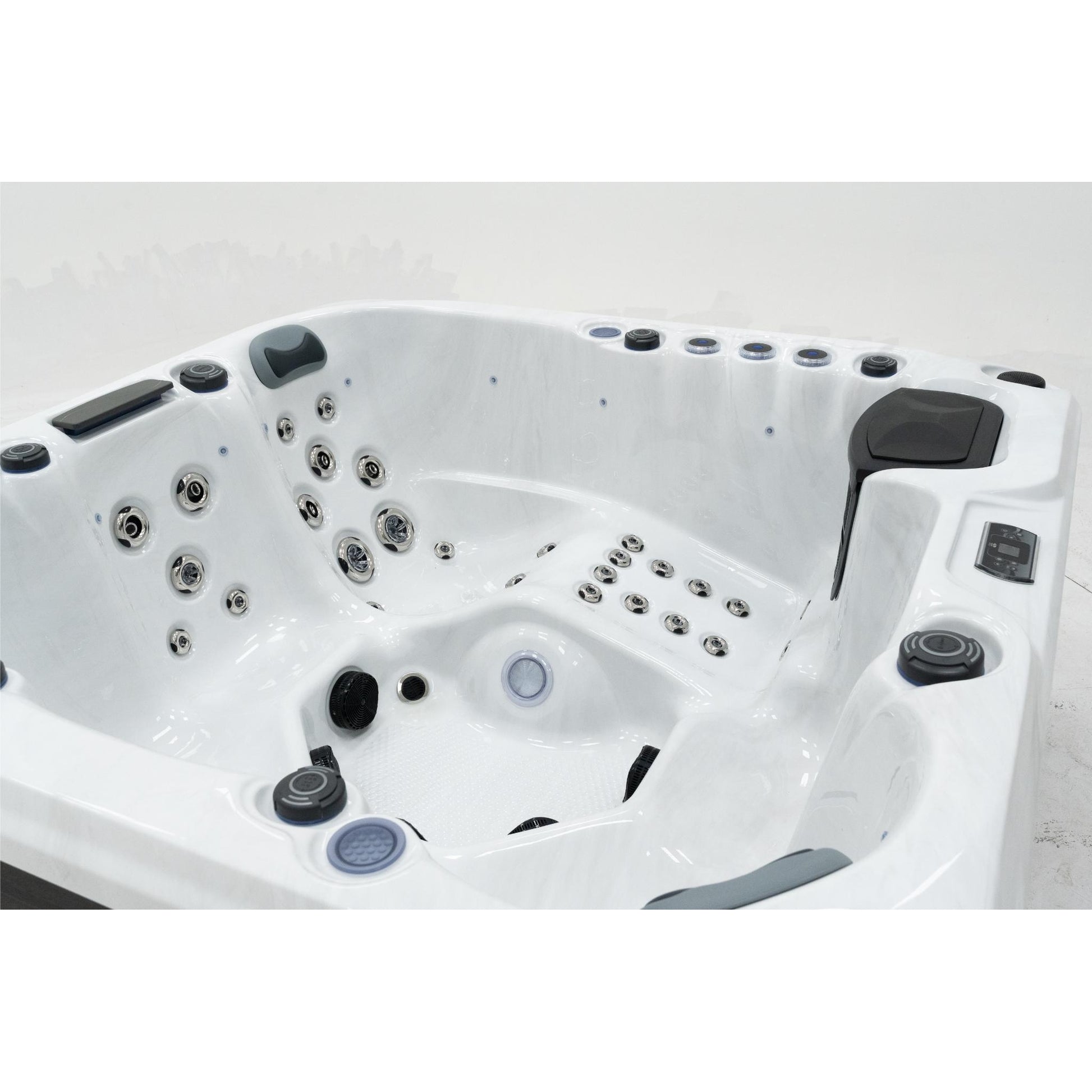 Experience deep muscle relief with 59 precision-designed hydrotherapy jets, powered by two 2HP pumps and a dedicated circulation pump for smooth, consistent water flow. The 3 kW heater provides fast, efficient heating, while the built-in ozone water care system helps maintain crystal-clear water with minimal upkeep.